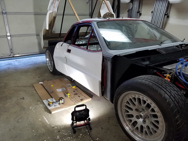 I bought adjustable body braces for the front and rear. One is visible on the front of the car in the bottom picture. The curve of the fiberglass panels is not symmetrical between the right and left sides but the braces push or pull the fiberglass into position. Interestingly I found that after holding the panels in position for a few weeks the fiberglass takes the new shape and doesn’t flex back after the braces are removed.