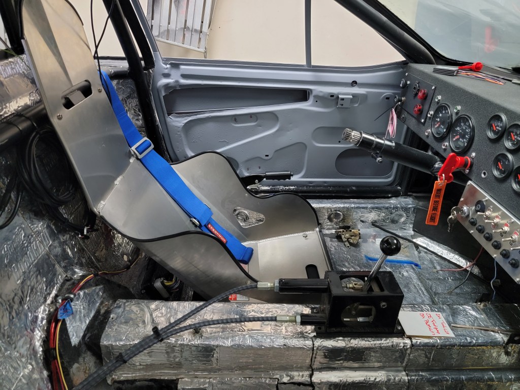 I installed C6 Corvette parking brake shoes in the rear so when the car breaks down I can secure it from rolling. Due to mounting constraints, the brake lever is on the left side of the driver. Not ideal, but with the high seat bolsters and possibly adding door bars, the brake lever won’t add any difficulty to ingress/egress. I’m waiting for some brackets to arrive so I can mount the cables at the spindle.