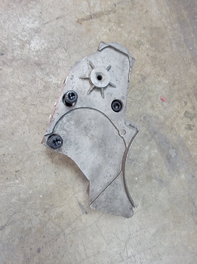 I’ve been working on the serpentine belt routing so I can hook up the alternator. I cut down one of the original engine brackets and relocated the idler pulley. The new pulley location should allow me to install a serpentine belt for just the alternator while utilizing the original belt tensioner.