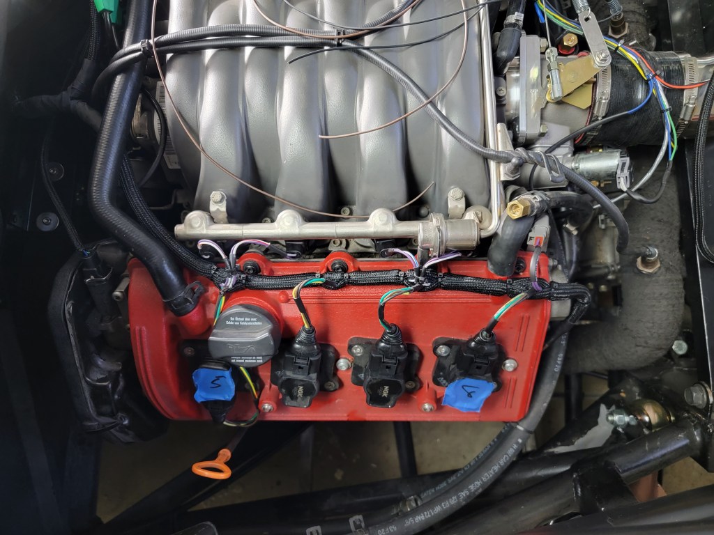 To avoid electrical interference, I divided the engine harness into two sub-harnesses: one for sensor data and one for the outputs (injectors, coil, etc). I moved the engine ECU alongside the Leash relay board for better integration. With the new wiring I ensured the VVT and variable intake are both working. Those systems affect the engine’s volumetric efficiency (VE) so it’s important they are functional before further tuning.
