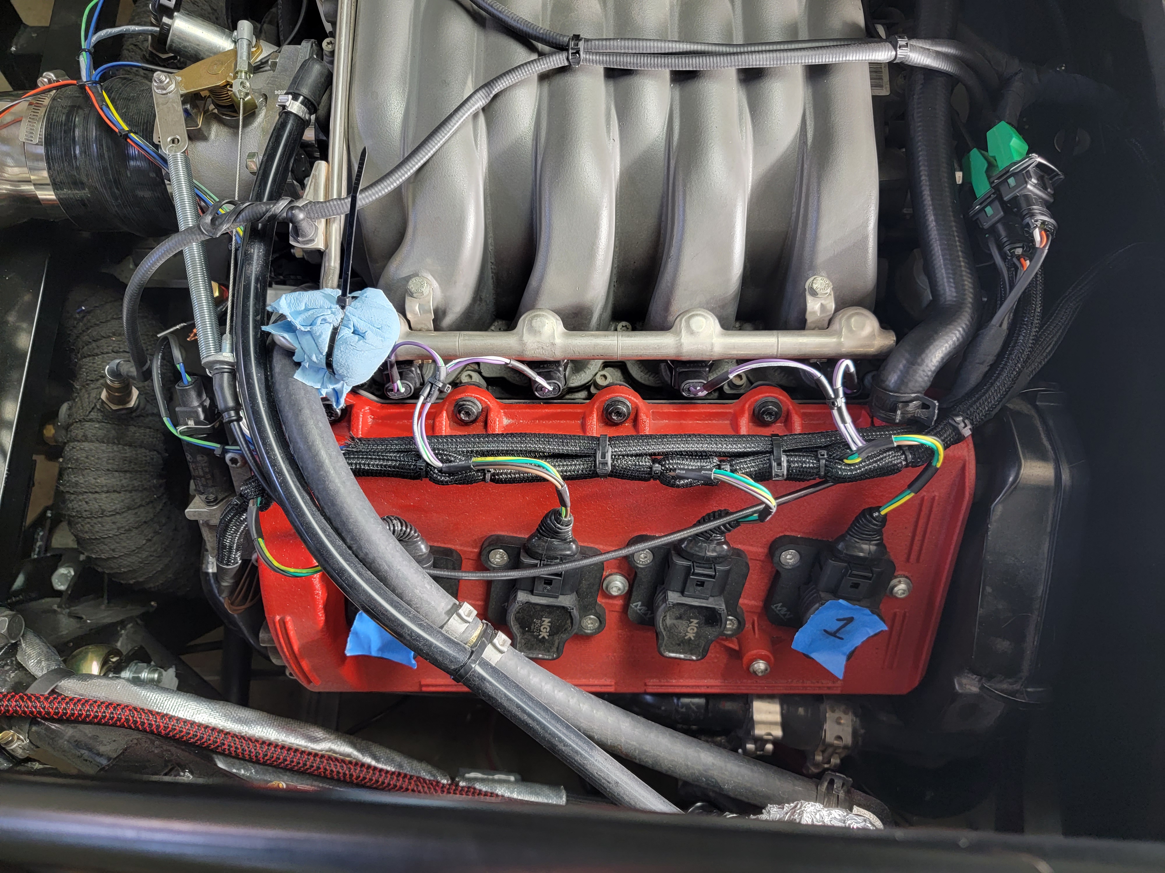 To avoid electrical interference, I divided the engine harness into two sub-harnesses: one for sensor data and one for the outputs (injectors, coil, etc). I moved the engine ECU alongside the Leash relay board for better integration. With the new wiring I ensured the VVT and variable intake are both working. Those systems affect the engine’s volumetric efficiency (VE) so it’s important they are functional before further tuning.