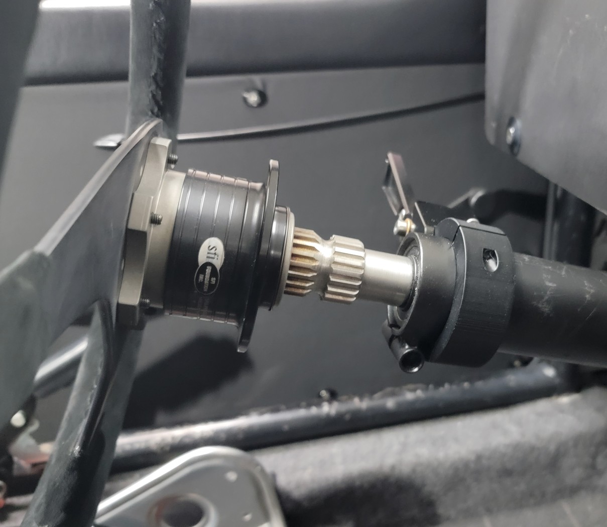 I wanted to replace the pin-style steering wheel Quick Release with an SFI rated collar-style. The new QR is thicker so I shortened the race column to avoid moving the steering wheel closer to the driver and welded a new spline on the steering shaft.